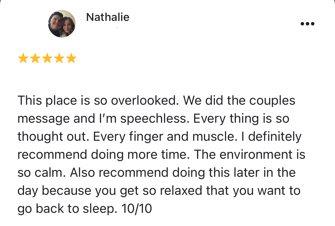Couples massage is one of our most popular services and is frequently chosen by local clients who want to relax together in a peaceful and comfortable setting.